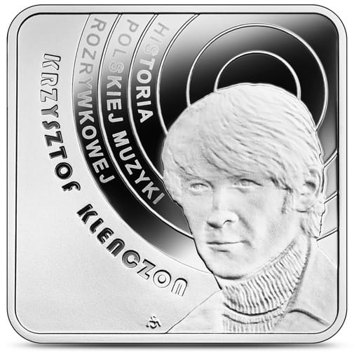 Rewers: Na rewersie monety widnieje stylizowany wizerunek Krzysztofa Klenczona. W tle okręgi na wzór płyty winylowe. Od środka monety ku lewej stronie łukami w czterech rzędach napisy: HISTORIA / POLSKIEJ MUZYKI / ROZRYWKOWEJ / KRZYSZTOF KLENCZON