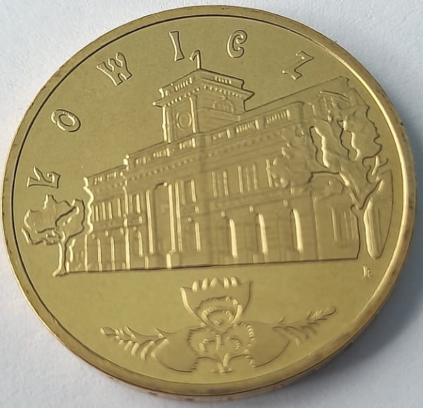 Na rewersie na pierwszym planie widnieje wizerunek ratusza w Łowiczu. Po obu stronach budynku stylizowany wizerunek drzew. U dołu monety przy rancie stylizowany wizerunek wycinanki łowickiej. U góry monety przy jej rancie łukiem napis: ŁOWICZ