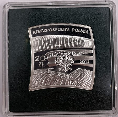 Awers: Na awersie monety w centralnym położeniu orzeł w koronie, godło ustalone dla Rzeczpospolitej Polskiej. U góry monety przy jej rancie na wyodrębnionym polu napis dużymi literami: Rzeczpospolita Polska. Po prawej stronie monety przy orle rok emisji 2012, a po lewej stronie nominał monety 20 złotych. W tle stylizowane fragmenty kopuł stadionów. Pod lewą łapą orła znak mennicy: m/w