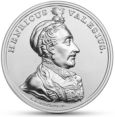 Czternasta moneta serii przedstawia Henryka Walezego, urodzonego w 1551 r. syna króla Francji Henryka II i Katarzyny Medycejskiej, ostatniego z dynastii Walezjuszów. Był on pierwszym elekcyjnym królem Polski. Obrany w maju 1573 r. po bezpotomnej śmierci ostatniego z Jagiellonów – Zygmunta II Augusta, do Polski przybył w końcu stycznia 1574 r. Jego koronacja odbyła się 21 lutego w katedrze wawelskiej. Na wieść o śmierci króla Francji, swego brata Karola IX, nocą z 18 na 19 czerwca 1574 r. opuścił Polskę. W 1575 r. w Reims został koronowany na króla Francji jako Henryk III.