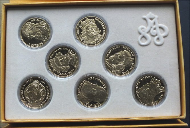 Numizmaty Kolekcja Królewska 7 x Piastowie, Srebro Ag925